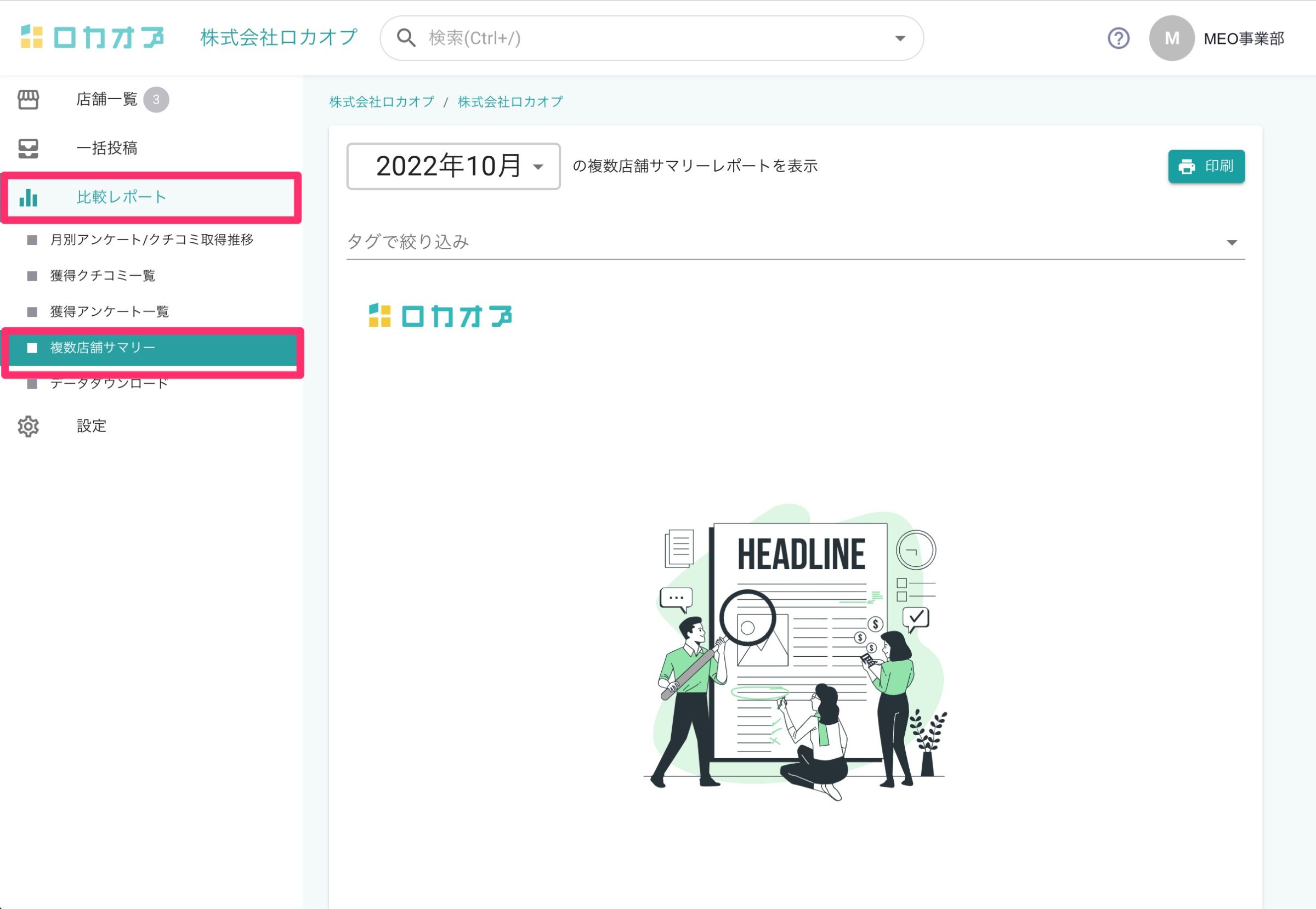 ロカオプMEOで複数の店舗をまとめた比較レポートが出力できるようになりました。