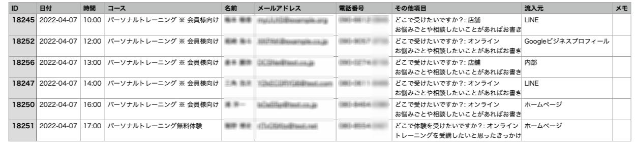 データに取り込みたいときに管理画面から簡単に出力が可能になりました。これにより予約者の情報を期間を指定してCSV形式で一覧でダウンロードすることができます。