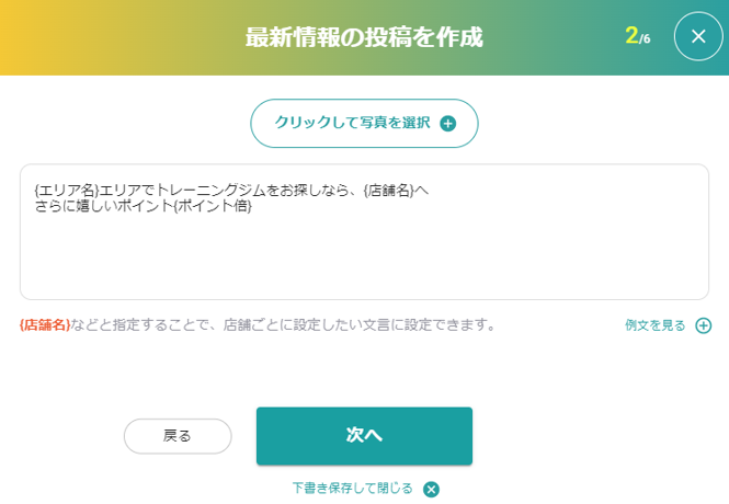 Locaopの一括投稿機能では、対象店舗を選択し、画像とテキストを両方一括で設定することができます。
