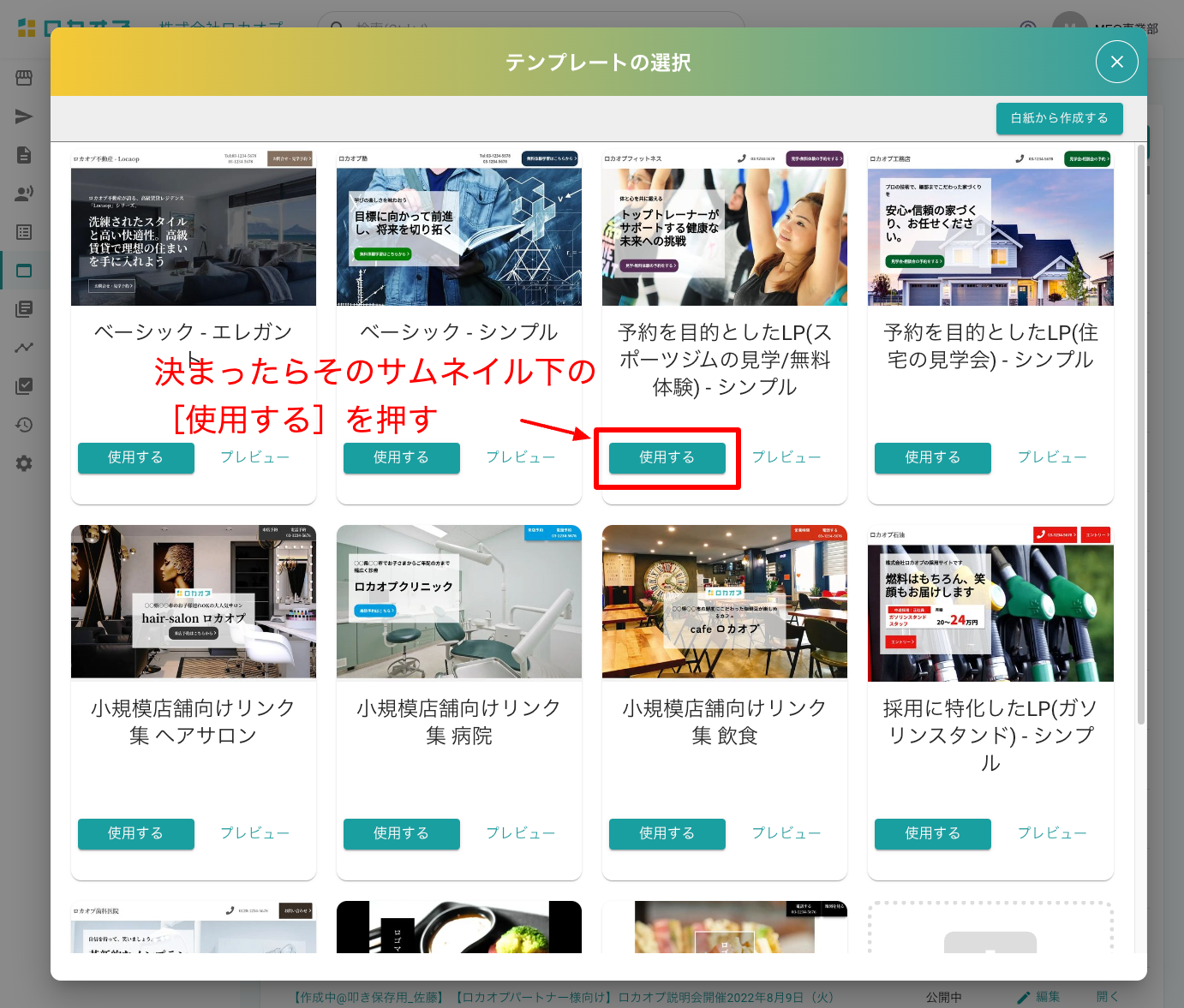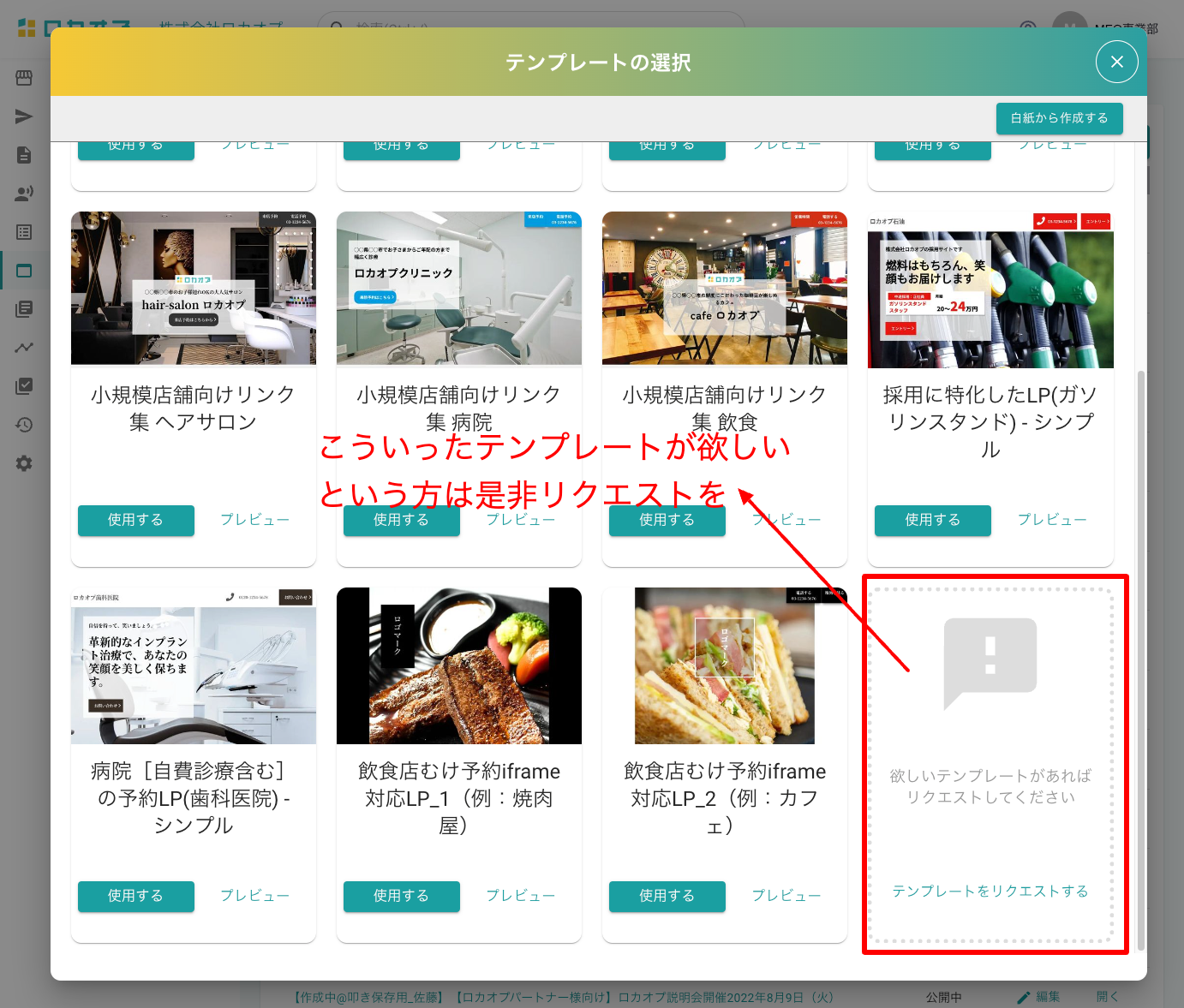 こちらのテンプレートを使用する場合はロカオプ予約も設定する必要がございます。